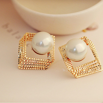 Pendientes de aleación refinados y exagerados, perlas cuadradas, tridimensionales, multicapa, perlas cuadradas, venta al por mayor, Europa y América