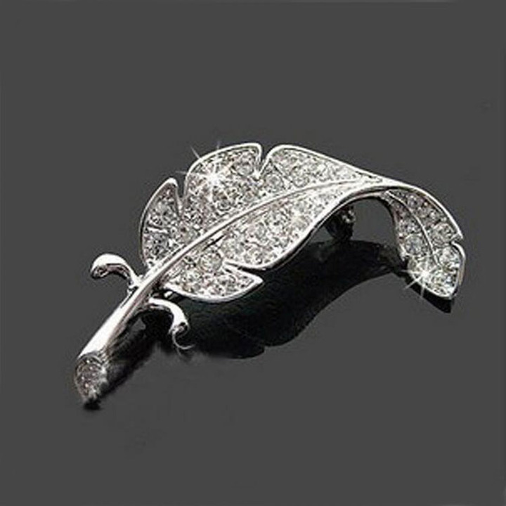Broche de hoja de diamantes de imitación para mujer, joyería de aleación de plumas, broche de piedra de circón, broche de letras de cristal, alfileres